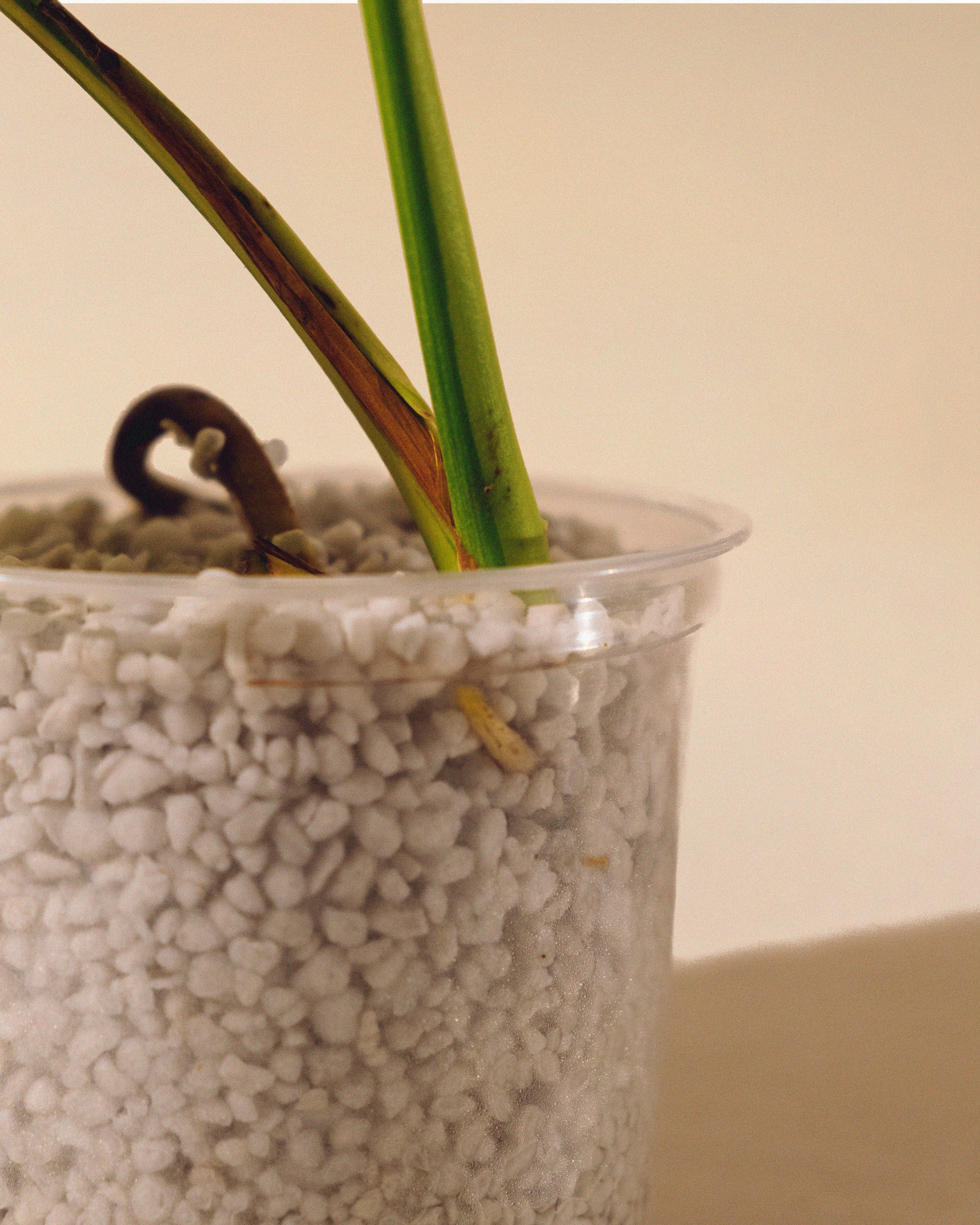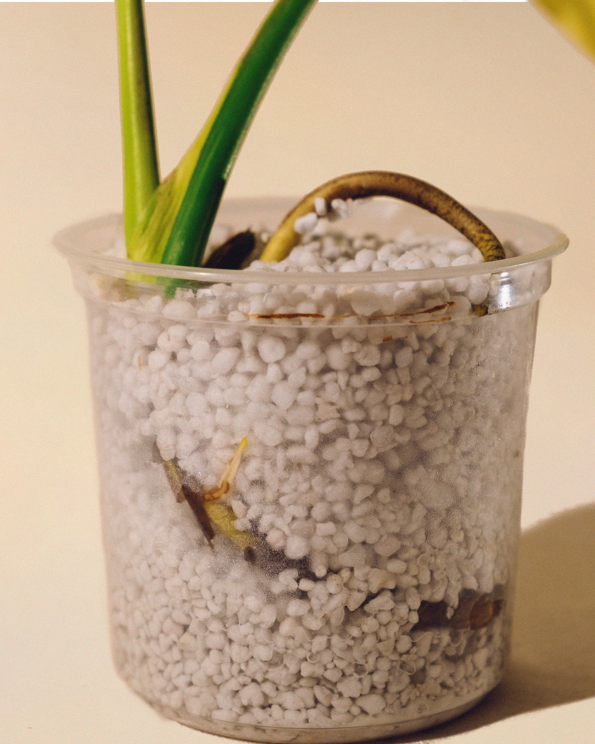 Monstera Yellow Marilyn con 2 hojas en perlita.
